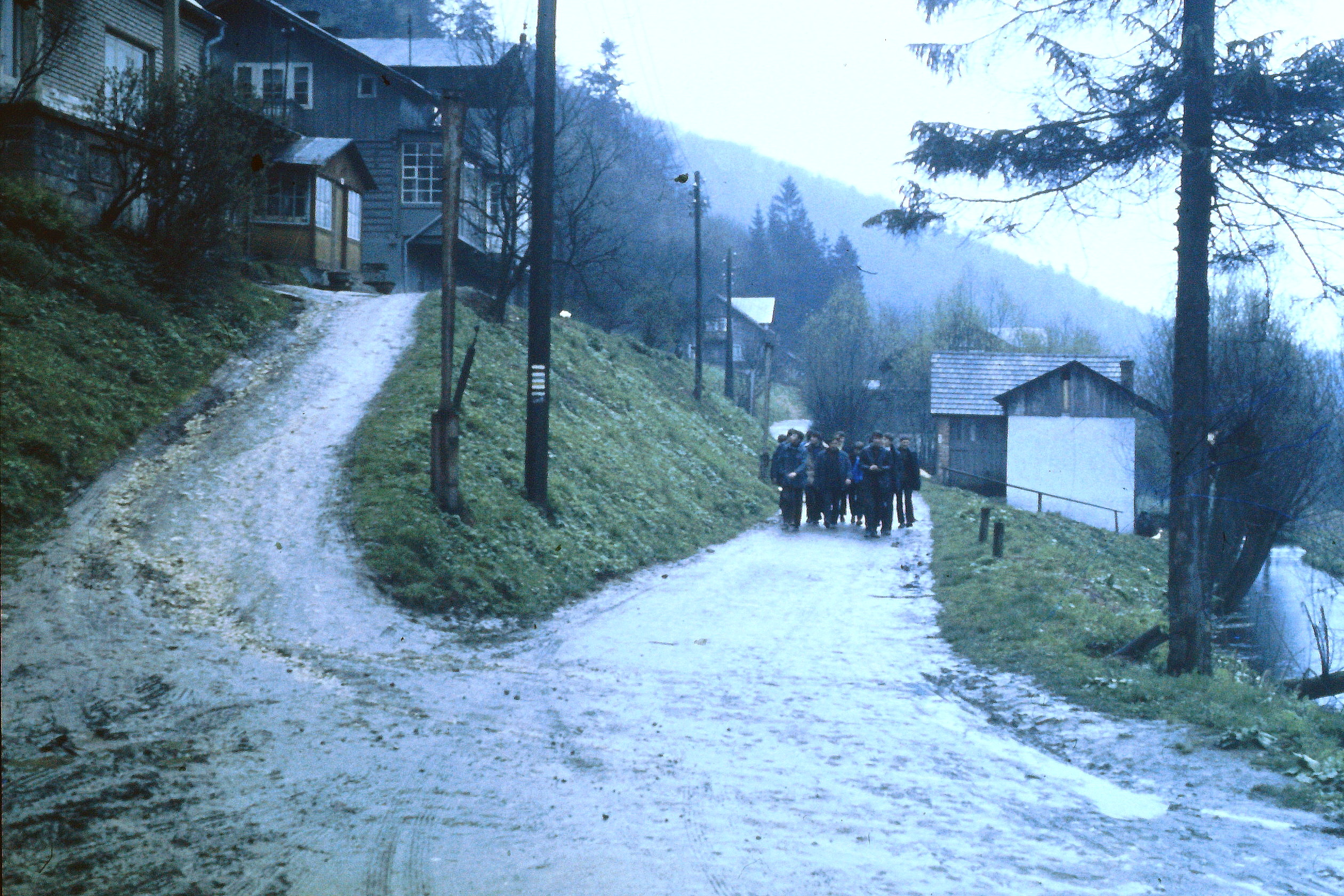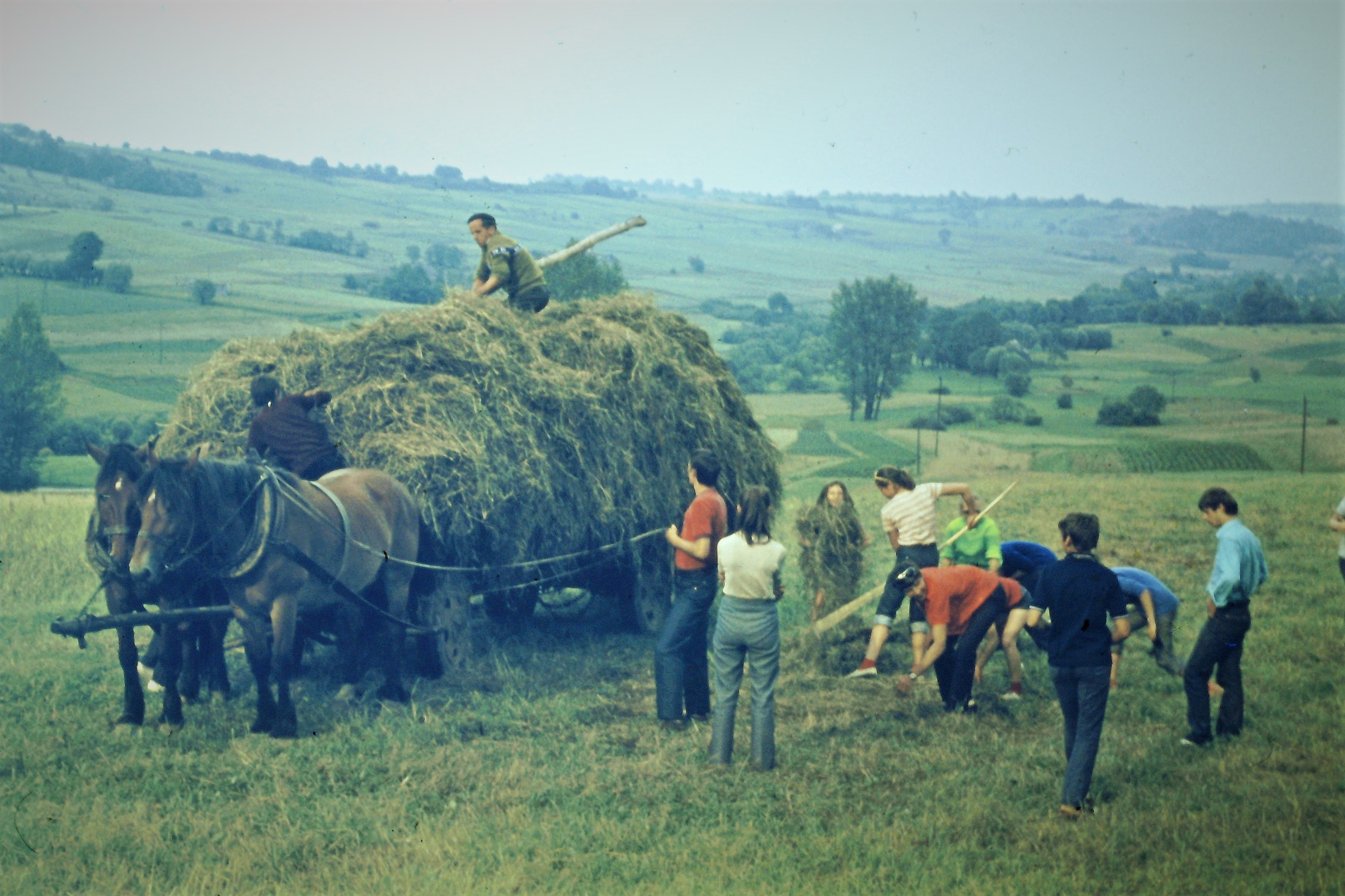 Po drodze młodzież była zobowiązana do wykonywania prac społecznych. Najczęściej była to pomoc przy pracach rolnych, tu pomagają w rozładowaniu płyt betonowych.