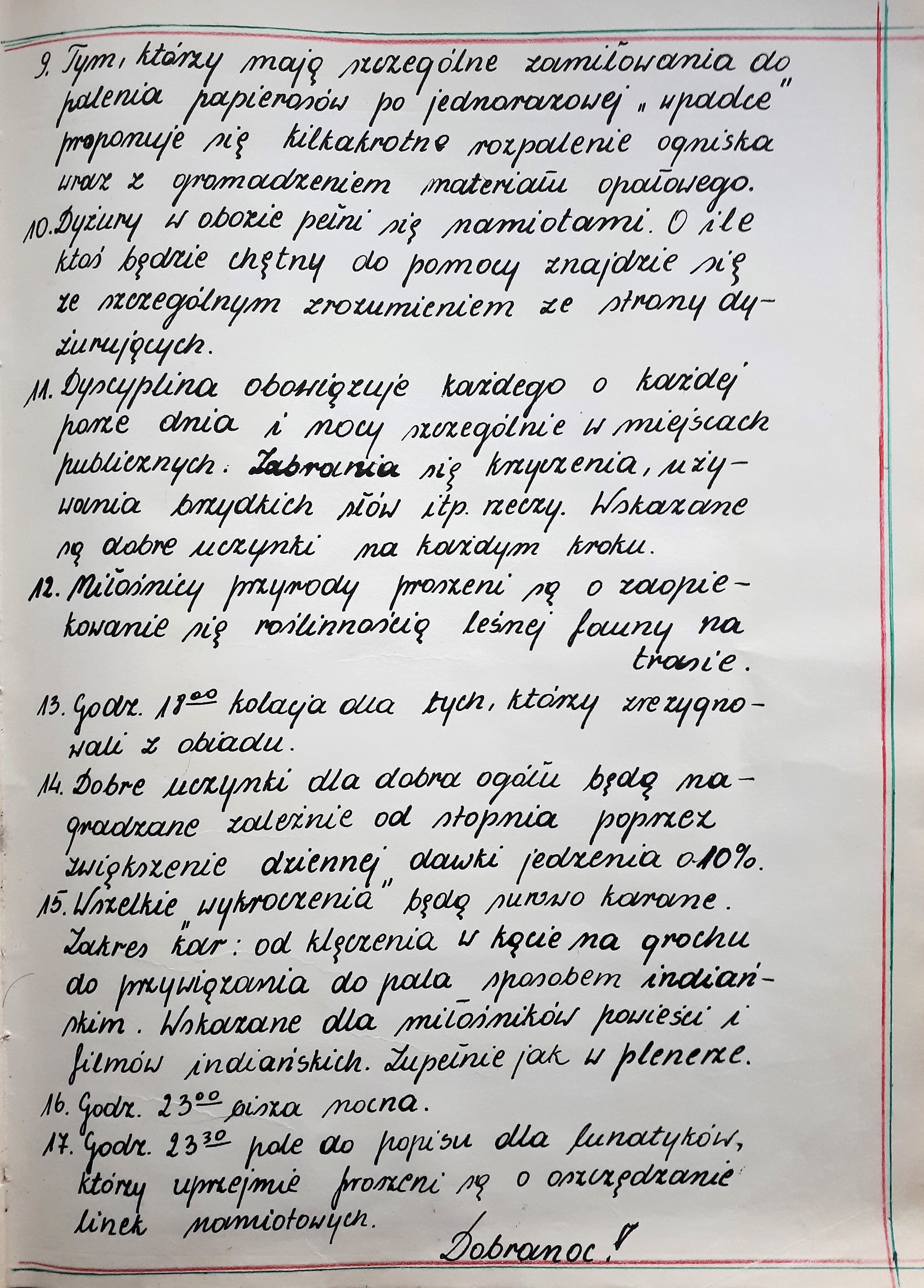 Wartym zauważenia jest jak trudno było zebrać sprzęt niezbędny do przeprowadzenia obozu. Uczniowie pożyczali go z różnych miejsc i zwracali po wycieczce. Odnotowane zostały nawet narzędzia takie jak łopatka saperska pożyczona od pana Korpalskiego czy siekierka od pana Mroczkowskiego.